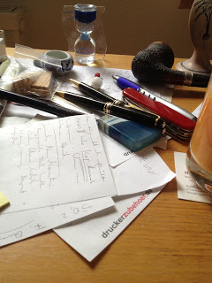 Manchmal ergeben Formen und Farben SinnDie wenigstens Menschen dürften mit der Lebensweise ohne jeglichen Rahmen und Fixpunkte klarkommen. Phasen hochgradiger Konzentration und großer Produktivität wechseln schnell mit Tagen voller Verzweiflung und Selbstverachtung. Notizen türmen sich und scheinen nutzlos, während sie kurz darauf zu Erkenntnis und spannender Handlung führen. Recherchen, die ins Nichts laufen. Entdeckungen, die Verbindungen herstellen. Geschichten, die sich zusammenfügen. Bilder, die wieder und wieder übermalt werden, bis Formen und Farbe einen Sinn ergeben.