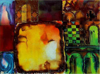 I met Tahir Bushra in Asmara in 1994. He was a Sudanese Nuban, and had moved to Asmara to be able to create his art in relative freedom. When I met him, he was making the most beautiful paintings I'd ever seen. Most were on wood. Some were the size of doors; others were barely a foot square. His materials were sand, shoe polish, white house paint, oil pastel, and ballpoint pen. Some of the symbols in his paintings are derived from Nuban body painting, scarification, and house decoration (se...