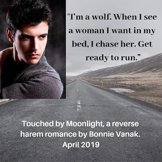 It's been a long time since I last posted in this blog. I've been super busy with contractual obligations for Harlequin, and finishing the first romantic suspense book in my contract, along with the proposal for the second book. But I'm happy to report I'm writing a NEW paranormal romance that is reverse harem, and expect to release it in April 2019.This is the second book of the Shifters Wild & Free series. It took a different departure from what I anticipated, with a stronger, more kick ass heroine. Sometimes you have to let the characters flow as they are created. She's on the run from her previous life and bad experiences, trying desperately to hide her powers, but Grayson, alpha werewolf of his pack, needs her for himself and his beta wolves.