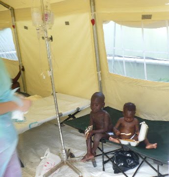 "Momma, momma, I want my momma." The plaintive cry from the little girl lying in the quarantined tent soon gave way to soft snuffles. Then she dozed again, her thin arm hooked up to an IV dripping lifesaving fluids into her dehydrated body.
