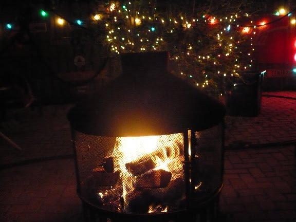 Temps are 44 and dropping to 38 tonight. First real cold snap of the season. So DH built a fire in our fire pit and we sat outside, playing Christmas carols on my iPod. Very relaxing, peaceful, fun.