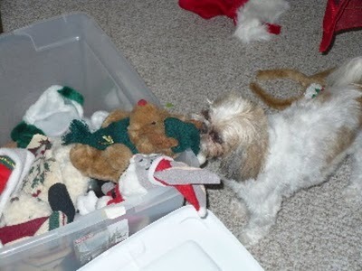 When the dogs decide to be helpful and help me "decorate" by pulling the toys out of the boxes. Happy December!