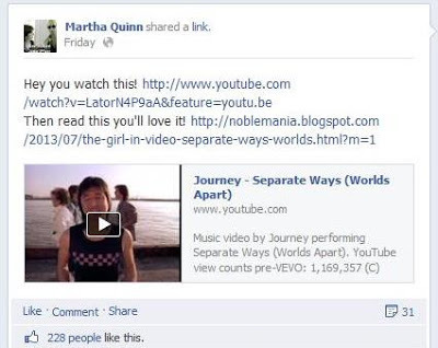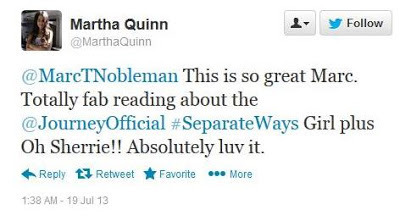 “Swafford, who has long shied away from the spotlight, was recently found by Marc Tyler Nobleman, author of the Noblemania blog, while he was working on a piece about all the lovely ladies who appeared in the ‘Separate Ways’ video [MTN: Actually the project, as you have seen, is about lovely ladies from 13 videos; there was only one in ‘Separate Ways’]. She declined to be interviewed or photographed, but gave him a short statement acknowledging that his detective work was spot on and giving him the low down on her current activities.”