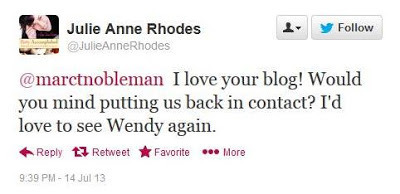 Julie: Not that I remember. Google wasn’t invented [yet] (!) so it wasn’t easy to track us down. Maybe [the] Julie Pankhurst [who founded UK social networking site] Friends Reunited has been inundated with “Addicted to Love” fan mail!