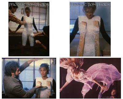 For Ghostbusters, I walked in and they told me to unwrap my hair and shake it. They told me that day that I got the part of the dream ghost. They did a cast of my body while I was wearing a leotard. Neck to knees. The make a mold in which I would be comfortable when they hung me up. They shot me through six to ten plates so it comes out ghostly. Fans were blowing my hair.