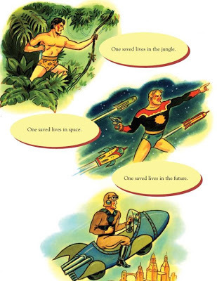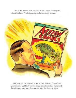 Both of my superhero picture books, Boys of Steel: The Creators of Superman and Bill the Boy Wonder: The Secret Co-Creator of Batman, take a similar approach on the second page: they use the rule of threes. (This is often associated with humor, but can be used in other ways as well.)