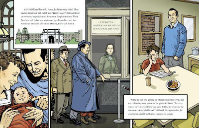 The text says that Bill sneaked his son Fred into the American Museum of Natural History, but doesn’t say how. This means readers must look to the art for the explanation, and kids especially love figuring it out.