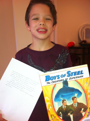 We are living in the Golden Age of Picture Book Biography, which allows writers unparalleled freedom in how we tell our true stories. Everything in the book must be factual, but not every fact must (or even can be) in the book. We need not present our tellings chronologically or wholly. Sometimes the birth and/or death of a figure are simply not essential details in our approach. (To the subjects, they were, of course, notable milestones.) I start Boys of Steel in roughly 1930, when Jerry and Joe met, and end it in roughly 1940, soon after Superman’s stratospheric rise. (In the author’s note, I do briefly address the rest of their lives.)