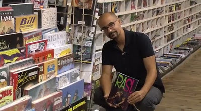 Here is a photo of Junot Diaz, winner of the 2008 Pulitzer Prize for Fiction, posing with Bill the Boy Wonder: The Secret Co-Creator of Batman…and numerous other titles he is also not paying attention to: