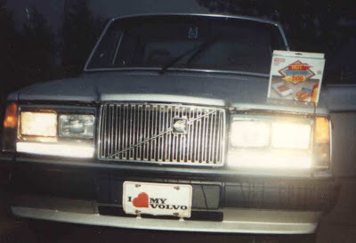 The hot dog cooker, perched inexplicably on the hood of my old car.
