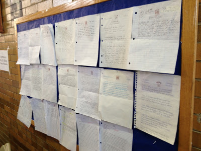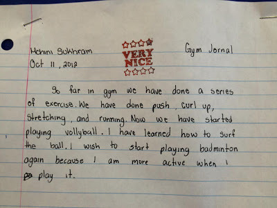 The conference was held in a high school and the book sales/signings were in the gym. I was thrilled to see that a gym teacher there not only gets blood pumping but also gets minds whirring: s/he has the students write. In gym class.