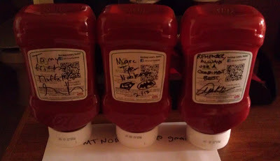 I recently broke the story of how a peppy bunch of Colorado teachers asked a trio of authors—Alan Katz, Gordon Korman, and myself—to sign ketchup bottles one evening at a recent reading conference. Note: none of our books is about ketchup, or any other sauces for that matter.