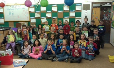 She then sent us this wonderful photo, and gave me permission to post it. It is her class holding up not only the three ketchups but also books by we three authors.