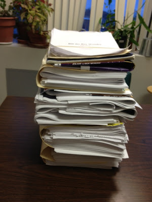 The “before” photo shows all the emails, layouts, legal correspondence, etc., collected during her three years of work on the book.