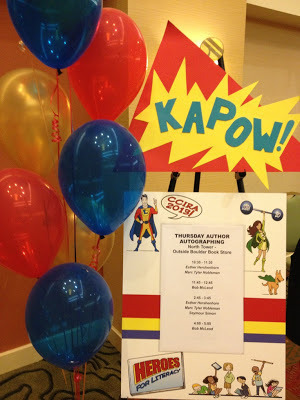 I was born for this year’s theme, Heroes for Literacy. You could walk barely five feet in the hotel lobby without coming across a superhero-themed sign or other decoration.