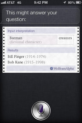Meanwhile, I asked Siri who created Batman. Look whose name came up first.