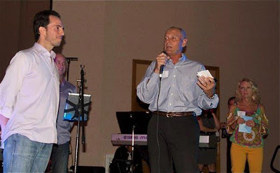 A highlight of the evening was when Tom Weber took to the stage to welcome everyone. He reminisced eloquently and then began a story from the summer. It was hard to hear but I did make out my name. At that point, someone gently shoved me onto the empty dance floor. Tom gestured for me to come on stage, which I did.