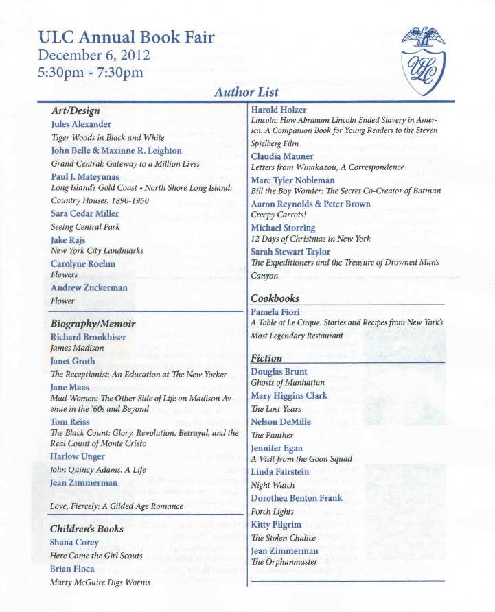 On 12/6/12, I had the honor of participating in my third holiday book fair at the Union League Club in New York City (my first was 2008, second 2009).