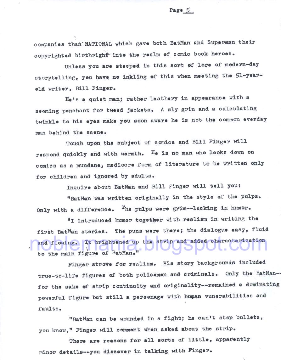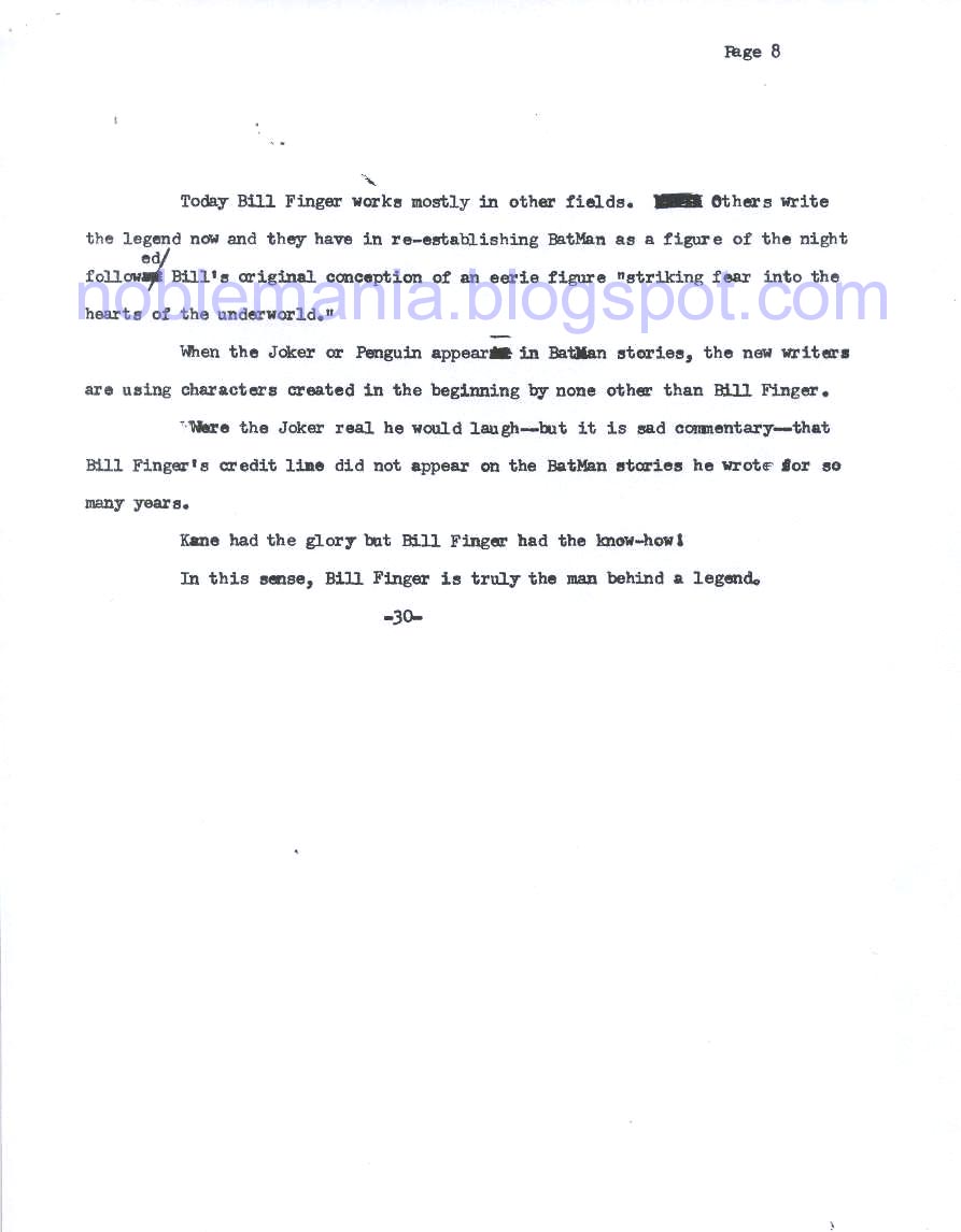 So at long last, below is “Bill Finger—The Man Behind the Legend,” the fabled “lost” article by Tom Fagan, written in 1965 when Bill was 51 years old. The most important word in it is “the”—the “the” in the last line.