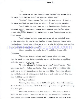 Meanwhile, a never-published interview with Bill was allegedly lost among the immense comics-related clutter of the Vermont house of longtime Batman fan Tom Fagan. At the time, I was already on the hunt for it. In fact I’d mentioned it here in March 2008.