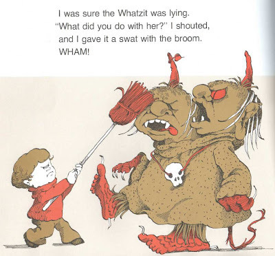 Harry goes on to whack the Whatzit two more times, pull its tail, threaten it, and finally twist one of its two noses. Whatzit and Terrible Harry is more like it.