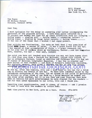 In my research for Bill the Boy Wonder: The Secret Co-Creator of Batman, I dug deep and discovered quite a bit that had not been published before. One of the most rewarding finds was personal correspondence—the only known examples of surviving letters written by Bill Finger.