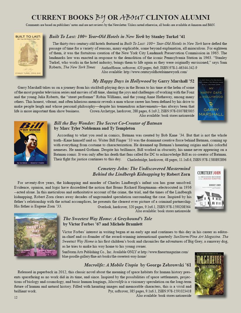 Bill the Boy Wonder: The Secret Co-Creator of Batman made the newsletter of the prestigious high school from which Bill graduated in 1933, DeWitt Clinton in the Bronx.