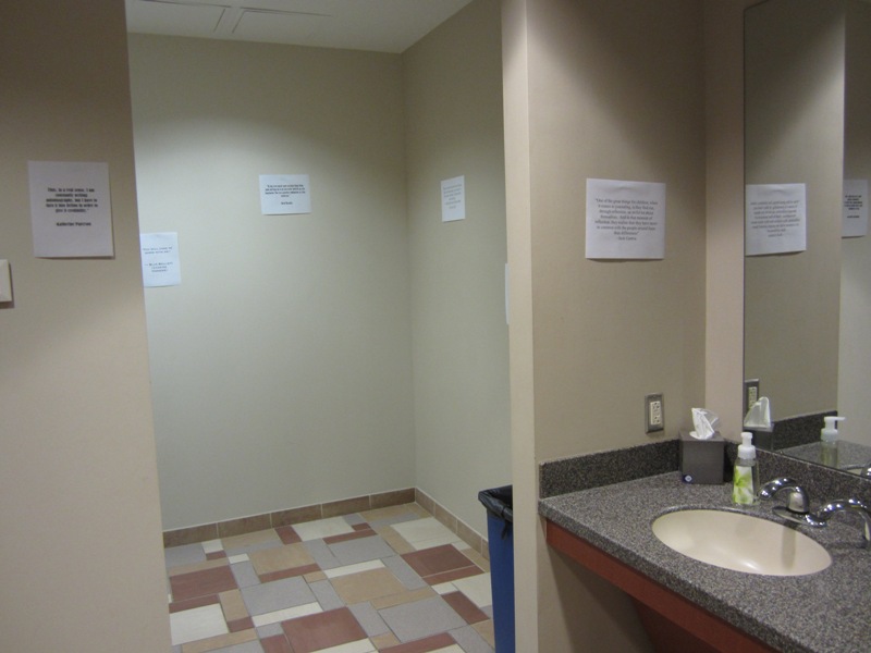 Two weeks earlier, my name had been on a T-shirt. I’m hoping bagel slicer is next.The bathrooms were decked out with quotations from authors of books for young people.