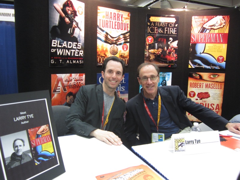 The emotional highlight of the panel for me: after I announced that Bill Finger’s lone heir, the granddaughter born two years after Bill died in 1974, began receiving some Batman royalties thanks to my project (and after the money had wrongly been going to other people for 15 years), the audience applauded.After the panel, Larry and I signed books side-by-side; first Superman and Batman teamed up, now authors of books about them: