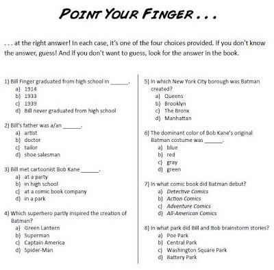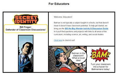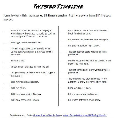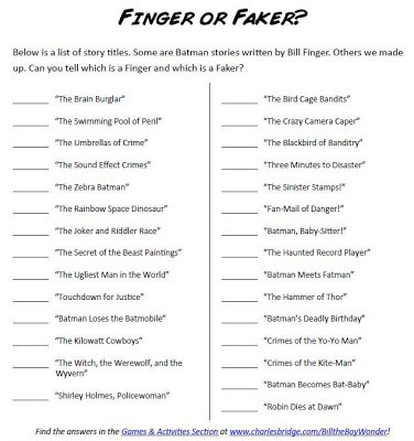 Charlesbridge, publisher of Bill the Boy Wonder: The Secret Co-Creator of Batman, kindly built a site for the book. I got to populate it with content that repurposes material from the book in fun and different ways. I even got to create the world's first games with a Bill Finger theme. (No one was in line behind me.)