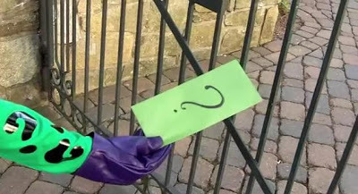 We wanted to use an 8½ x 11 green envelope for Riddler’s note; that would’ve allowed Robin to remove the note without having to unfold it. However, I couldn’t find such an envelope in time.