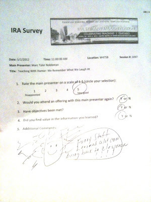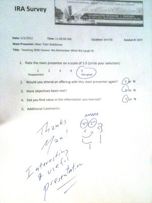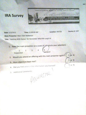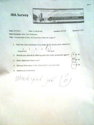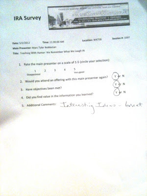 On 5/2/12 in Chicago, I presented “Teaching with Humor.” (Try you again this year, “But Kids Haven’t Heard of It”!).