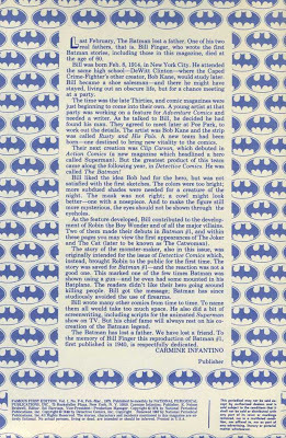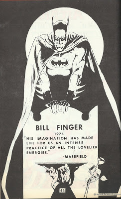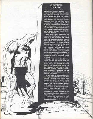 When Bill Finger, uncredited co-creator of Batman, died in 1974, it went unrecognized in the mainstream media. But the same year, DC Comics ran two memorials in lesser-seen publications; the first the only obituary Bill got. I’ve shown them before and here they are again: