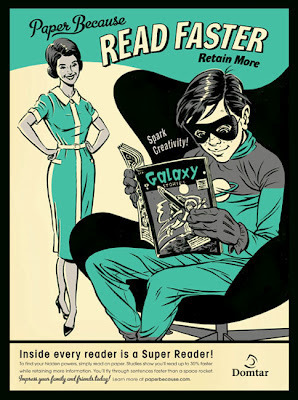 Yes, a 1960s-styled ad promoting reading on paper, the irony being that in the 1960s, no such ad would have been necessary.