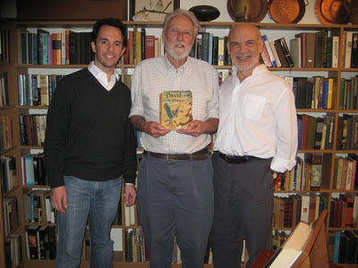 Taken in Edward's library, this photo shows (as Bruce commented) "three generations of David and the Phoenix"—the author (holding the lone first edition hardcover he owns), a fan from circa the first edition (Bruce), and a fan from circa the 1981 Scholastic edition (me):