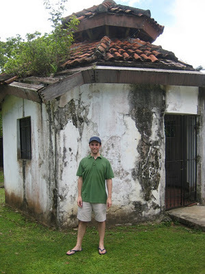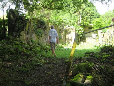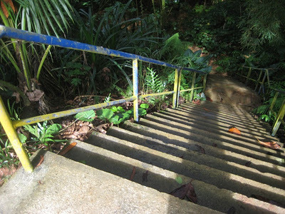 This staircase leads down to a peaceful jungle site that was once anything but;