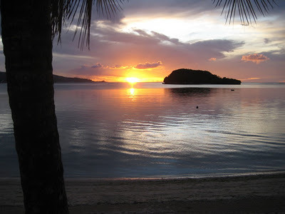 I volunteered to walk back out to him to let him know she wanted him. Normally, due to my aversion to both sand and midday sun, I am eager to get off a beach as soon as possible; in this case, with the tropical sunset and my little island still in view, I was happy to stay. (Pretending I was on a miniature "rescue" mission was also appealing. And delusional.)