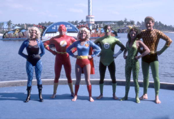 I guess what I am trying to say is that while the initial storyline may have been constructed via committee with Sea World administration, DC folks, and the "writer," much of the task of taking that storyline and making it a viable, Jimmy Olsen-facilitated action show came in many cases from the performers themselves. I had numerous people on staff through the run of the show [who] were announcers, not skiers or high divers or boat drivers, but people who actually established the pace of the show, moved it forward for the audience, covered when a boat was late or if there [was] a fall. These are the people who sat in endless script meetings and worked in rehearsals to make this show different from Cypress Gardens or other ski shows; this one had a story and blended action, skill, beauty, magic, stunts, and great visuals in a way that had not been done before.