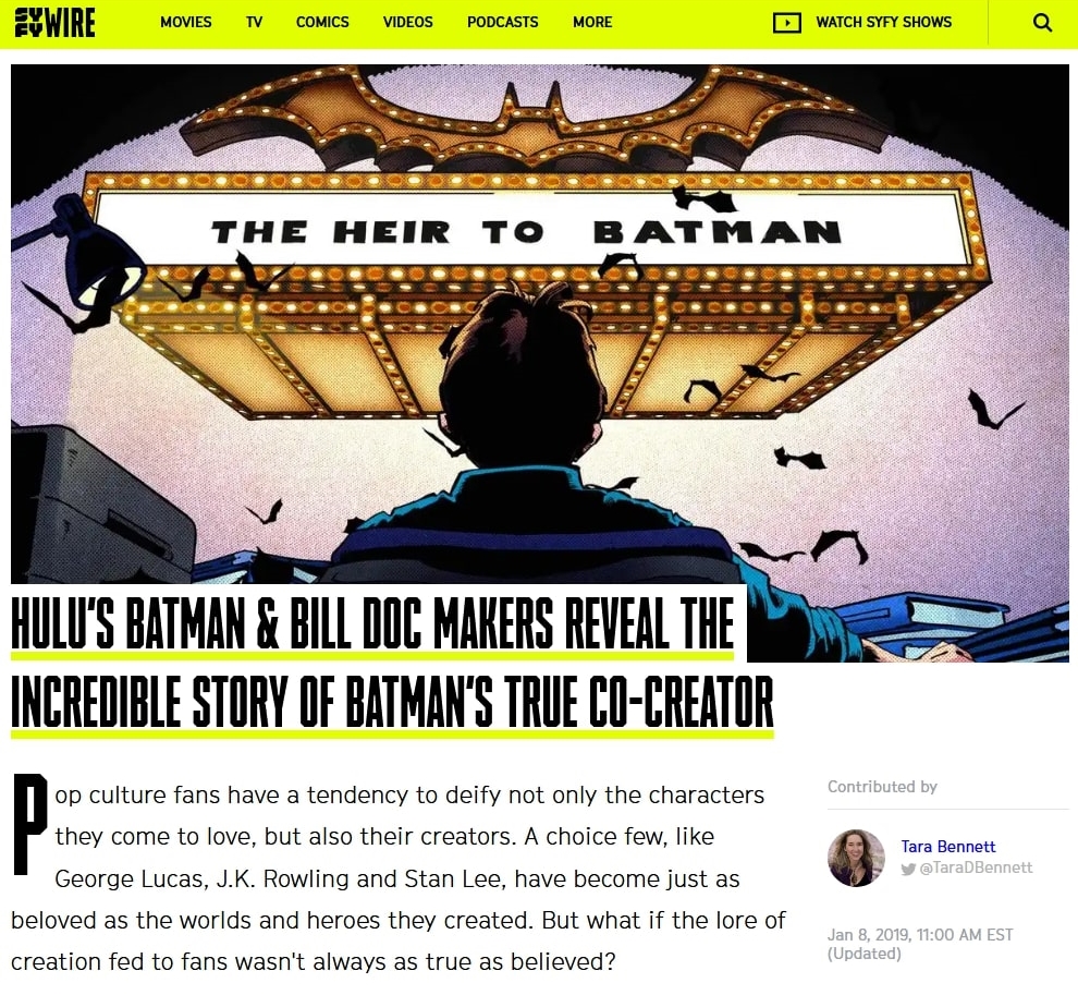 I only recently came across a snappy 2019 interview with Batman & Bill directors Don Argott and Sheena M. Joyce on Syfy (the brand formerly known as the Sci-Fi Channel) about the documentary.