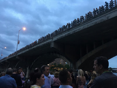 One night, with Tom Angleberger (who was able to fly in earlier that day), I visited one of the city’s bridges from which thousands of bats famously emerge nightly to the thrill of hundreds of onlookers.