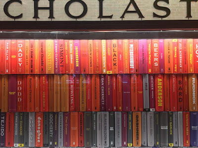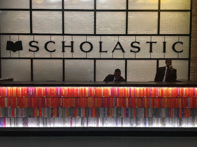 Several months ago, my longtime author friend Bill Doyle told me that Scholastic had redone their lobby. It’s been almost twenty years since I lived in New York City and I’ve been to Scholastic only once or twice since then. I don’t remember what it used to look like. On 4/23/19, after a school visit in Mahopac, NY, and the day before a school visit in Manhattan, I got the chance to see how it looks now.
