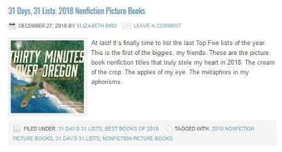"Thirty Minutes Over Oregon" on Nerdy Book Club list of best nonfiction picture books of 2018