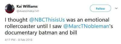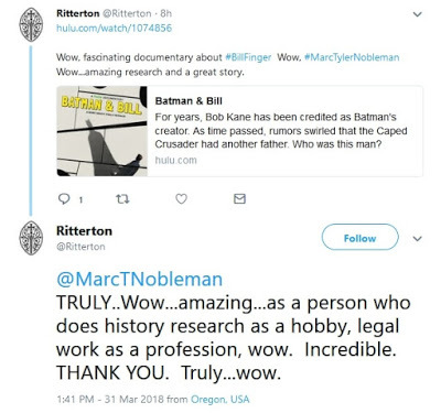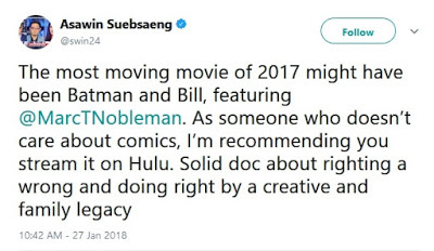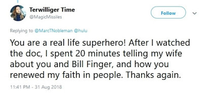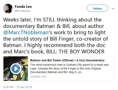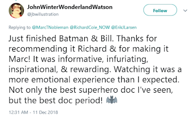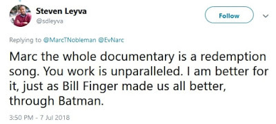The documentary Batman & Bill came out in May 2017; the love for it (i.e. for Bill Finger) continued throughout 2018. Not one but two tweets compared it to the NBC sobfest This Is Us (yes, This Is Odd!)...