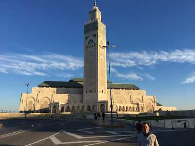 The day after I arrived (which was the day before I started at the school), a group of teachers gave up their free time to take me around the city. We started at the Hassan II Mosque, which sits spectacularly on a promontory on the Atlantic Ocean. It introduced me to a concept that should not have surprised me but which I'd never considered: a new mosque. Construction began in 1987 and lasted six years. What makes that all the more remarkable is how big it is: it has room for 25,000 worshipers inside. Its minaret is 210 meters (690 feet) which is, depending on the source, the third- or fifth-largest in the world.