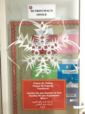 The majority of the student population is Moroccan. They are an exuberant bunch. Lots of hugs from elementary kids—and some local staff. Even the warm-hearted man who drove me from the airport to the hotel, the hotel to the train station, etc., but who spoke little English, embraced me at one point. I think Moroccans pride themselves on being welcoming, though I feel the people of most countries I've visited were similar (if not as huggy).