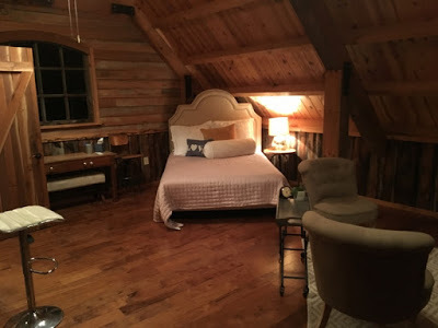For my last school of the trip, I drove 2.5 hours through scenic (if rainy) country to cross the border into Virginia. A teacher at that school runs (with her family) a picturesque, new construction rental barn for special occasions like weddings. It has a large event space on the ground floor and one cozy bedroom/bathroom on the second. That rainy night, for the second time in six months, I was the only guest in a house. Though the rain pelleting the roof was moody, no ghosts this time.