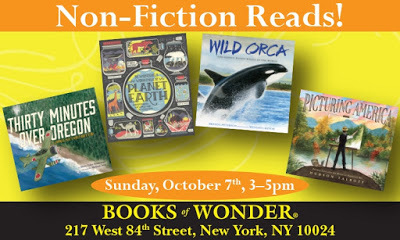 On 10/7/18, at the year-old Upper West Side outpost of Books of Wonder, I had the pleasure of sitting on a panel alongside Thirty Minutes Over Oregon illustrator Melissa Iwai and other creators of nonfiction Wendell Minor, Hudson Talbott, and Rachel Ignotofsky (the last two of whom I'd not met before).