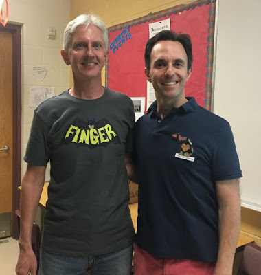 Middle school teacher Paul Bach, who reached out to me a few days earlier to tell me he's used bothmy Bill Finger book and TED Talk to great effect in his classroom. He clearly has great taste in T-shirts.(As you saw in the research panel photo above,it inspired my outfit for day 2.)