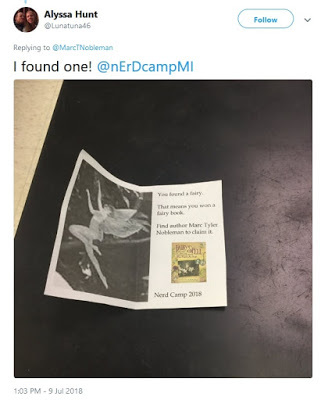 I hid four fairies around Nerd Camp.Find one, find me, win a book.