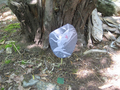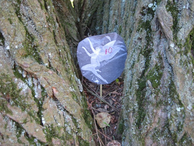 Like Elsie in Fairy Spell (and in real life), I prepared paper fairies. In fact, I used hers. She drew them; I merely printed them out. Before the kids arrived, I hid the fairies in the lightly wooded area near the field where we'd serve cupcakes. They were numbered so I'd have a quick way to know if the kids found them all.
